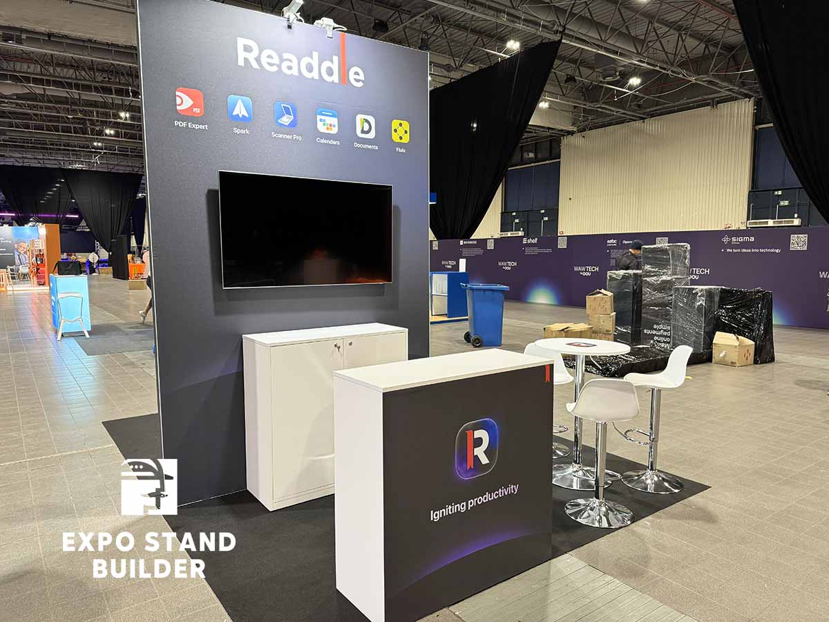 Ein ausgezeichnetes Projekt für einen modularen Messestand in Warschau für die Veranstaltung WAWTECH. Gesamtfläche 12 Quadratmeter. Aufteilung in einen Besprechungs- und einen Unterhaltungsbereich. Es wurde das modulare System BeMatrix verwendet, wodurch der Stand in kurzer Zeit aufgebaut werden konnte. Planen Sie eine Teilnahme an der WAWTECH? Kontaktieren Sie uns für Ihren Messestand!