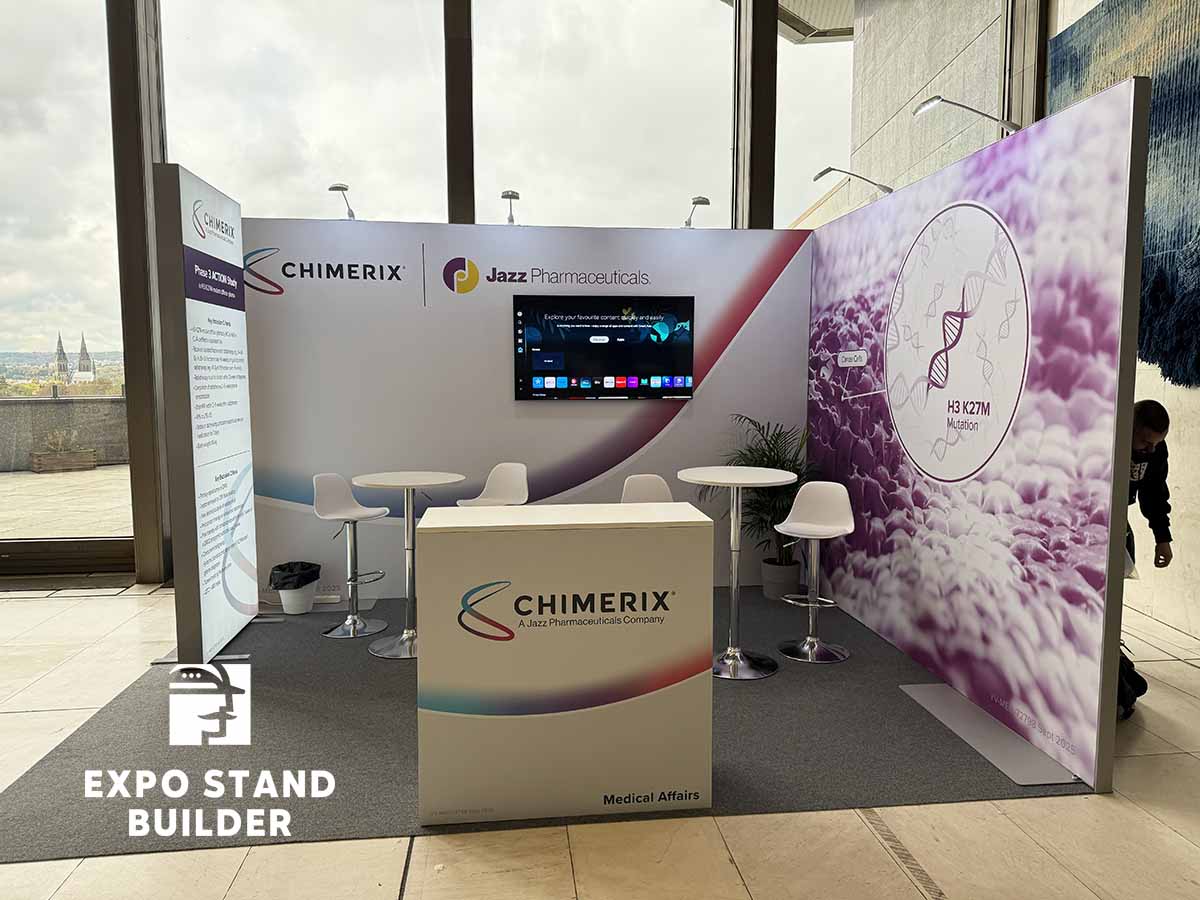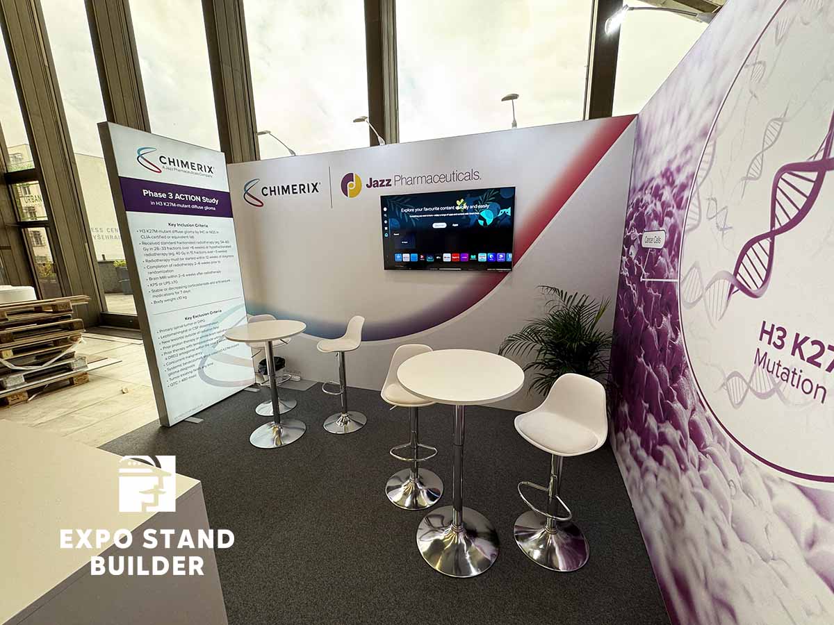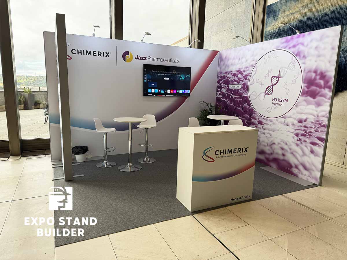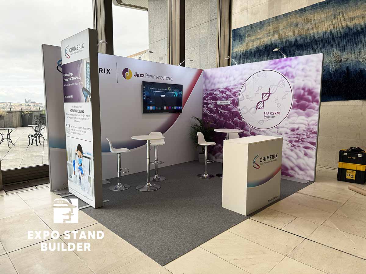 An eco-friendly exhibition stand for our clients at the EANO event. The small exhibition stand is made of environmentally friendly reusable aluminum modules. The stand focuses on bright graphics. A small exhibition stand is always an excellent solution when you have a limited budget or tight deadlines. We are ready to offer you an exhibition solution, even if the deadlines are very tight!