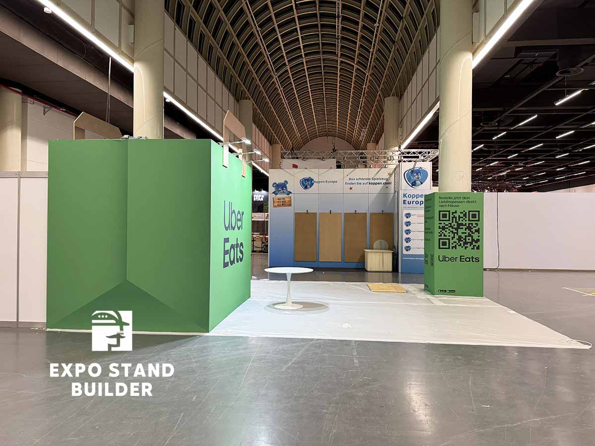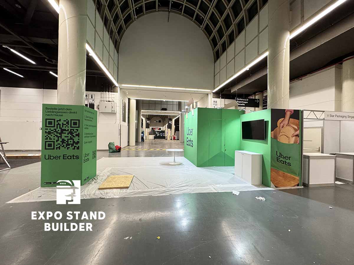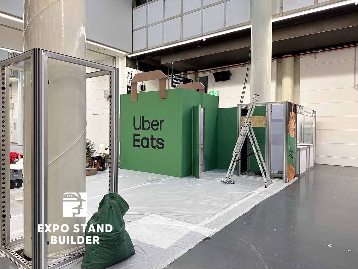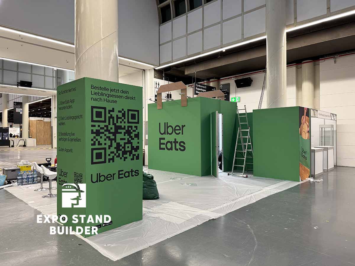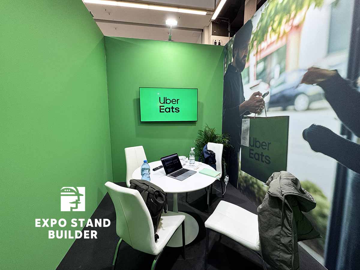 48 квадратних метрів модульної конструкції, яку ми використовуємо вже багато років для компанії Uber Eats. Цього разу на стенді були представлені закрита кімната для переговорів та відкритий простір для гостей виставки. А ви також виступаєте за сталий розвиток не на словах, а на ділі, як це робить Uber Eats? Тоді замовляйте у нас модульні виставкові стенди для будь-якої виставки в Європі!